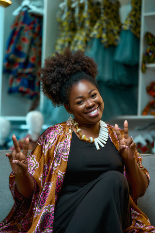 Though she started her career as a Financial Analyst (cue the classic “I did it for my parents” nod—hello, African upbringing!), her creative spirit couldn’t be contained. Ruby eventually traded spreadsheets for sketchbooks and never looked back. Today, she blends business savvy with soulful design to lead Kua Designs—a fashion house in Accra, Ghana known for its bold, African-inspired pieces for women and kids.